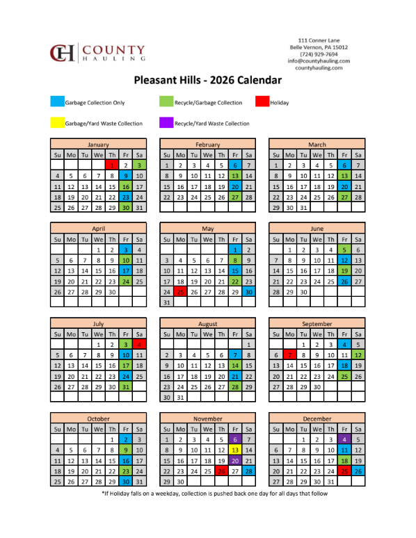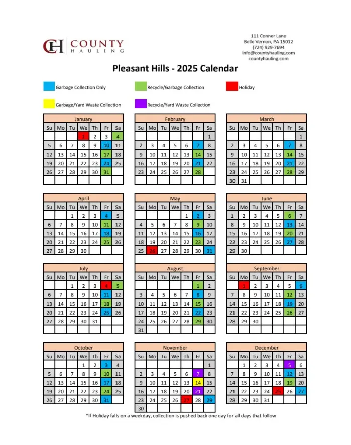 However, when County Hauling celebrates a Holiday during the week, it will delay our collection one day later that week.